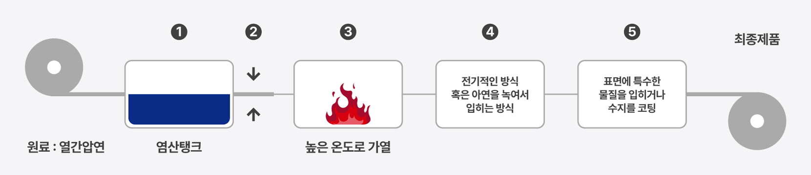 원료인 열간압연의 녹이나 불순물을 제거하는 과정